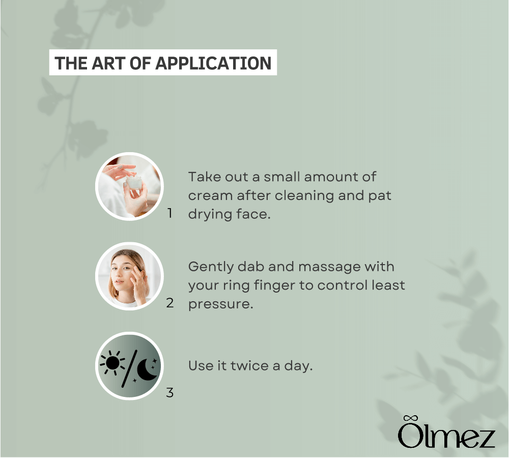 After cleansing and serum, use your ring finger to gently pat a small amount under each eye. Use morning and night for best results.
